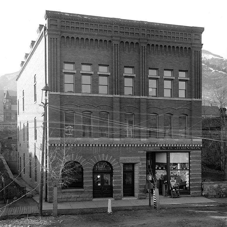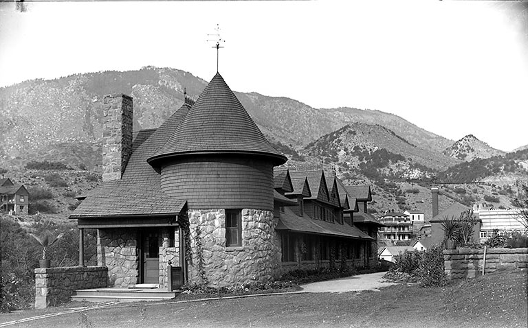 Wheeler Spring was drilled around 1920 by Jerome’s son-in-law, here at the corner of the grounds of his home, Windermere. The expansive house was located just behind this font where the Post Office now stands. A short distance to the west (left), some of the buildings on Wheeler’s estate originally contained a bowling alley and shooting range, and several still exist today as the Wheeler House, now owned by the Cliff House.